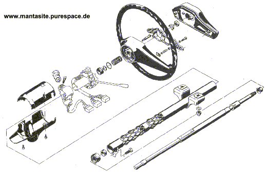 Der Wendekreis des Manta-A beträgt 10,50 m. Das Lenkrad gab es damals in zwei Ausführungen: das normale Standard-Lenkrad (wie auf den Abbildungen dargestellt ist) und als Sport-Lenkrad.